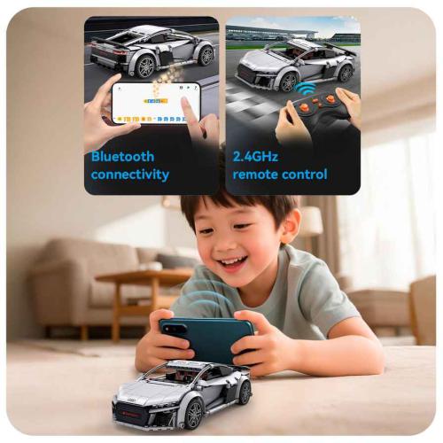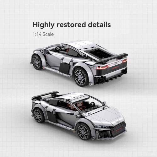 O CaDA C57012W Audi R8 Coupé é um modelo oficialmente licenciado do icónico Audi R8 Coupé, com 536 peças à escala 1:14. O set apresenta peças impressas, cor prateada e reproduz fielmente o carro desportivo de motor central produzido entre 2006 e 2024. O veículo permite condução manual, mas também possui funcionalidade completa de controlo remoto, sendo adequado tanto para brincadeira como para exposição.