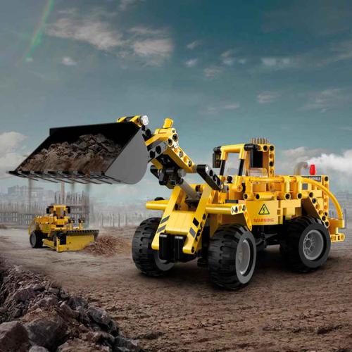 O CaDA C65004W Escavadora Bulldozer 2 em 1 é um modelo realista com 693 peças, ideal para jovens construtores e entusiastas de maquinaria. O set reproduz fielmente um carregador de rodas e um bulldozer, incluindo mecanismos funcionais de braço e pá para levantar e baixar cargas. Possui também funções de direção e condução que permitem manobrar o veículo de forma realista. A construção estimula criatividade, resolução de problemas e coordenação motora.
