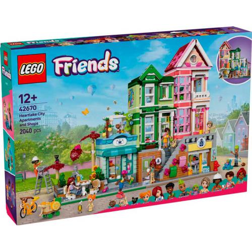 O LEGO® Friends Apartamentos e Lojas de Heartlake City apresenta um cenário urbano com 3 casas coloridas, lojas e espaços comunitários cheios de detalhes. Inclui 8 minibonecos, 3 figuras de gatos e personagens como Paisley, Zac e Ella para criar várias histórias. As crianças podem explorar a padaria, lavandaria, estúdio de cerâmica e parque com atividades como xadrez e encontros sociais. Estimula a criatividade, a narrativa e o espírito de comunidade.