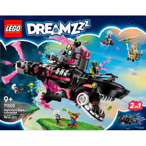 Mergulha no mundo dos sonhos com o LEGO DREAMZzz Submarino Tubarão dos Pesadelos e vive aventuras épicas com Mateo, Logan e Astrid. Vais adorar construir o tubarão e transformá-lo em submarino ou navio de guerra, com disparadores, mísseis e cockpit que abre. O interior inclui uma prisão e peças modulares compatíveis com outros sets DREAMZzz. As minifiguras e figuras do Z-Blob e Sonhozinhos Cibernéticos dão vida à ação.