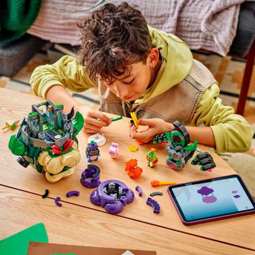 Recria batalhas épicas de Super Mario Bros Wonder e ajuda a libertar o Príncipe Florian. Tens um Bowser Castelo detalhado com interior revelável, cela e funções para voar e disparar bolas de fogo, perfeito para ação e exposição. Inclui figuras do Yoshi Cor-de-Rosa, Colchama Piranha, Príncipe Florian e Bowser Jr para dares vida às tuas aventuras. Ao adicionares Mario, Luigi ou Peach (vendidos à parte), desbloqueias interações digitais e uma batalha final ainda mais emocionante. Um set completo que estimula a criatividade e a brincadeira envolvente.