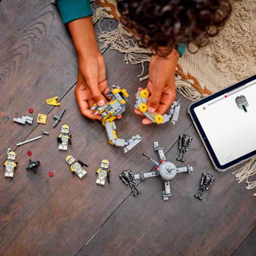 Constrói um pelotão do 327.º Corpo Estelar e entra em combate contra os Super Battle Droids neste Pack de Batalha LEGO Star Wars inspirado em A Vingança dos Sith. Vais poder posicionar os soldados clonados com os seus equipamentos e enfrentar as forças inimigas em cenários cheios de ação. O set inclui um AT-RT articulado, uma torre de disparo e um Spider Droid para recriar batalhas intensas da galáxia.