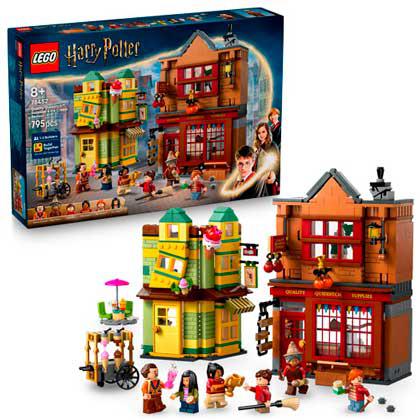 Desloca-te à loja Equipamentos para Quidditch e à Gelataria de Florean Fortescue para desfrutar de aventuras mágicas com o set LEGO® Harry Potter Diagon-Al. Inclui modelos LEGO detalhados de 2 icónicas lojas da Diagon-Al e 6 minifiguras. A loja Equipamentos para Quidditch inclui uma função de vassoura flutuante e está cheia de equipamentos para inspirar jogos criativos. A gelataria abre-se e facilita as brincadeiras, contando com lugares interiores e exteriores e uma banca de gelados rétro na rua.