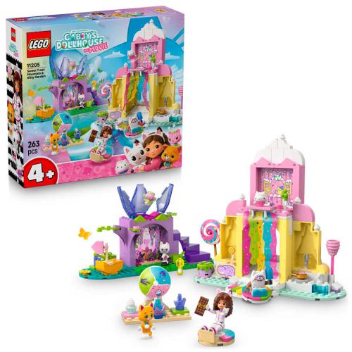 O set O Monte de Docinhos e Jardim da Fadinha, inspirado no Gabbys Dollhouse: The Movie, oferece duas áreas mágicas para brincar com a Gabby, Pandinha e Fadinha. No Monte dos Docinhos, as personagens deslizam por uma cascata em boias de dónutes, enquanto no Jardim da Fadinha exploram joias escondidas e um trono de flor de cristal. O set inclui cenários detalhados e elementos interativos que incentivam o jogo criativo e o faz de conta. Com instruções ilustradas, Peça Inicial e sacos separados, a construção é simples e acessível para crianças a partir dos 4 anos.