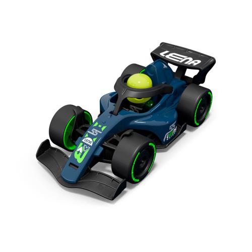 LENA® Carro de corrida Fórmula, azul-escuro. Pneus de borracha de alta qualidade. Eixos de aço galvanizado. Arco de proteção (roll bar) que abre para brincar. Inclui figura LENA®. 21 cm. Adequado para utilização no interior e no exterior. Aconselhado a crianças com mais de 2 anos. Embalado numa caixa de cartão colorida. FABRICADO NA EUROPA. Certificado pela TÜV.