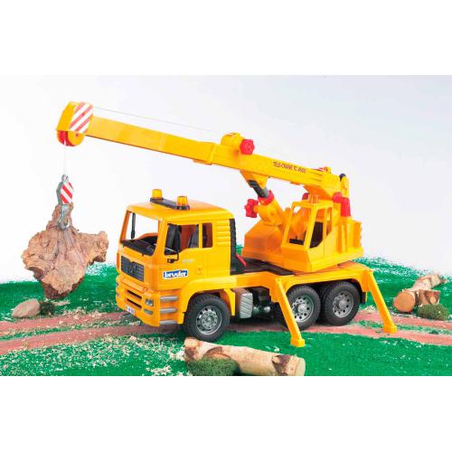 Com o teu camião grua e o seu braço extensível, podes atingir alturas elevadas. Ele tem ainda uns suportes laterais que o deixam estável, enquanto trabalha. Compatível com acessórios.