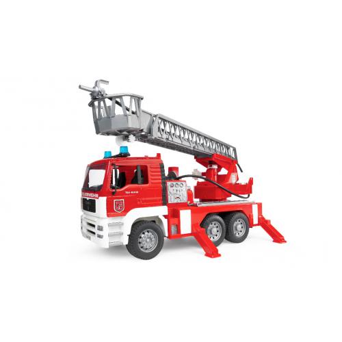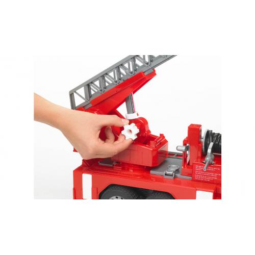 Ajuda no combate ao fogo e no resgate de pessoas com este camião dos bombeiros. Tem uma grua/escada extensível e giratória. Com módulo de luz e som. Capot abre. Funciona com água. Compatível com acessórios.
