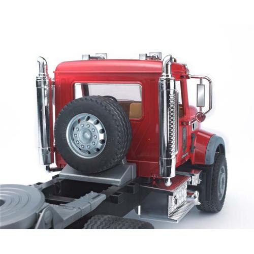 Com este camião e o seu reboque, podes transportar algumas máquinas, como a escavadora. Em apenas uma viagem até ao local das obras, tens dois veículos, prontos a trabalhar. As portas e o capot abrem. É possível separar o reboque. Baixa a protecção e deixa a escavadora deslizar. Compatível com acessórios.