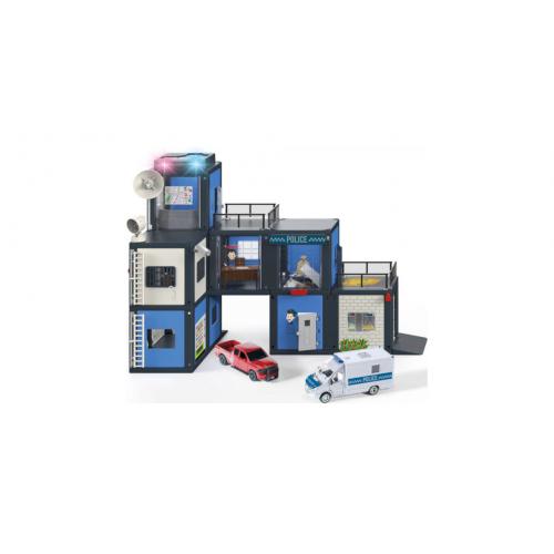 Com a nova esquadra da polícia, o siku SIKUWORLD continua a expandir-se. O edifício de três andares pode ser montado de várias formas, incluindo em L, U ou como estrutura de vários pisos, graças ao sistema modular de encaixe. Inclui paredes com janelas, zonas de serviço, ala das celas e diversos detalhes como antena, escadas, holofote, sistema de satélite, mesa, cadeiras e câmara de vigilância. O design estimula a criatividade e o desenvolvimento motor e cognitivo das crianças através da brincadeira.