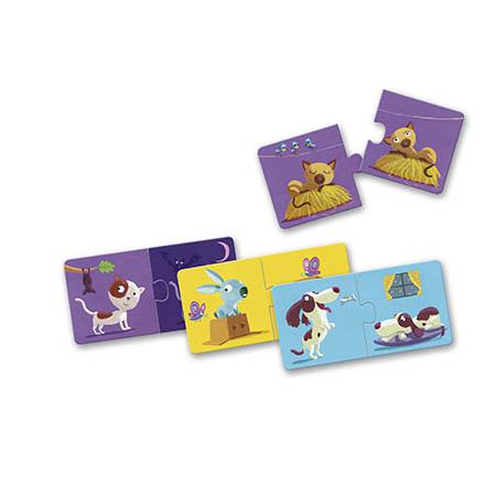 Aconselhado para crianças com mais de 2 anos. Conteúdo: 10 puzzles de 2 peças. Produto em papel e cartão com certificação FSC®.