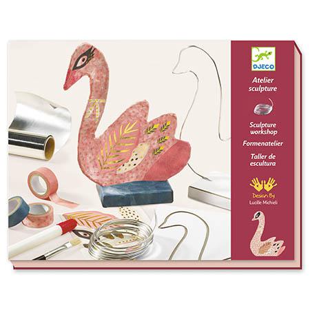 Aconselhado para crianças com mais de 8 anos. Conteúdo: 1 base, 1 molde (com o contorno do animal), fio metálico, folha de alumínio, 3 rolos de adesivos impressos, autocolantes para decorar, 1 pincel, 1 proteção de mesa e 1 folheto explicativo passo a passo a cores.