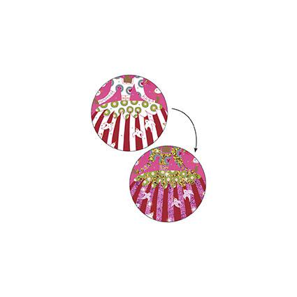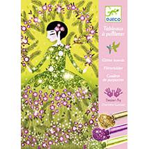 Desc. Técnica: Ilumina 4 quadros que apresentam vestidos elegantes com glitter colorido. Colocas o teu quadro na caixa, revelas as zonas pré-coladas com a ajuda da ferramenta fornecida e depois polvilhas com o pó com glitter seguindo o código de cores indicado no folheto. Quando terminares a atividade, os vestidos ficam cintilantes e iluminados com grande requinte.