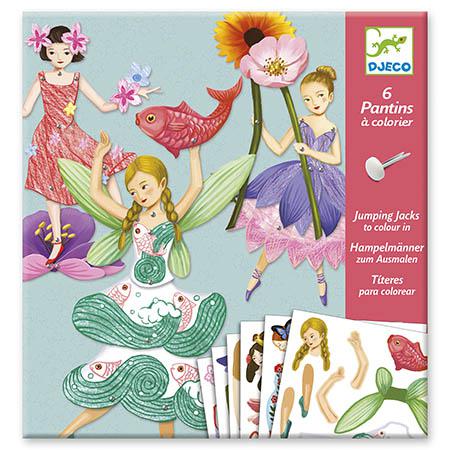 Desc. Técnica: Utilizas uma pasta de colorir e montagem que te permite criar 6 bonecas articuladas de fadas; começas por colorir as peças, depois destacas os elementos em cartão e vais montando cada figura, dando forma a personagens que podes depois movimentar e usar em histórias, explorando a tua criatividade enquanto combinas cores e peças de forma simples e divertida.