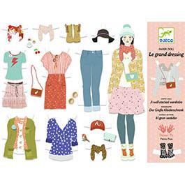 Aconselhado para crianças com mais de 6 anos. Conteúdo: 3 manequins em cartão com 23 cm de altura, mais de 100 peças de roupa e acessórios em papel pré-cortados para destacar e 1 caixa com compartimentos para arrumação. Atividade criativa que estimula o jogo simbólico e a imaginação. Produto em papel e cartão com certificação FSC®.
