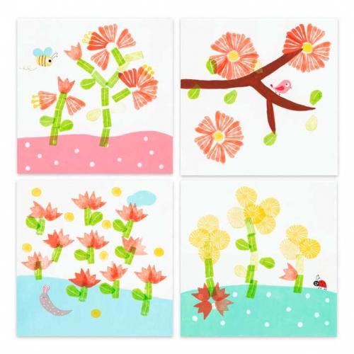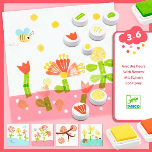 Um conjunto de carimbos com o tema das flores e da natureza, em que as crianças decoram livremente os cartões suavemente ilustrados. Pouco a pouco, vão pintando os carimbos e marcando as impressões para animar as decorações propostas. As crianças divertem-se a mudar as combinações, dando asas à sua imaginação.