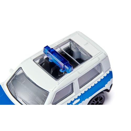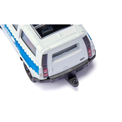 A Polícia Federal Alemã é responsável pela segurança interna na Alemanha e monitora, entre outras coisas, as passagens de fronteira para os países vizinhos. Nesta importante e exigente tarefa, os policias têm ao seu lado um forte parceiro: o Land Rover Defender. O grande veículo off-road não só oferece espaço suficiente para pessoas e equipamentos, mas também tem muita potência para perseguições selvagens, mesmo em terrenos acidentados. Mesmo suspeitos e transeuntes no quarto das crianças dificilmente têm chance de escapar: a robusta carroçaria de metal e o chassi de plástico resistem a obstáculos ainda maiores quando o Land Rover com design branco e azul da Polícia Federal Alemã com os seus aros desportivos com pneus em borracha começa a perseguir. Belo detalhe: os vidros transparentes e o grande teto solar proporcionam uma visão do interior de plástico do veículo. Atenção, agentes federais de serviço! A barra de sinalização azul no teto torna a viatura da Polícia Federal Alemã visível ao longe. Estás a planejar uma operação maior? Não há problema, porque o engate de reboque integrado de série é compatível com uma grande variedade de modelos de reboques da Siku. Como sempre com a Siku, os faróis e as luzes traseiras são reconhecíveis como impressões fiéis ao original.