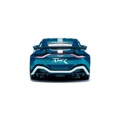 O nome: Uma lenda. A versão: Racing Deluxe. Estamos a falar nada mais nada menos que do Aston Martin Vantage GT4. Com uma dinâmica e desempenho aprimorado graças ao novo motor V8 de 4,7 litros, este impressionante carro de corrida deixa os seus rivais e companheiros de combate para trás sem esforço nas pistas de corrida de todo o mundo. A atraente pintura Long Beach Blue Metallic com a elaborada impressão branca nas laterais, no capô e na traseira, bem como no teto, também o tornam uma verdadeira jóia com um grande fator must-have. O vidro claro revela uma visão do interior (plástico) do carro, que é mantido fiel aos detalhes em pequena escala e em num preto subtil. Faróis e luzes traseiras são reproduzidos como uma impressão fiel ao original. Juntamente com os aros pretos desportivos com pneus em borracha, a impressionante e enorme asa traseira completa o visual exclusivo do Aston Martin Lagonda (AML) Racing Series. Aliás, a carroçaria deste sonho de corrida é feita de metal robusto, para que o Aston Martin Vantage GT4 resista a qualquer batida ou capotamento, mesmo em corridas de Grande Prémio no quarto das crianças.