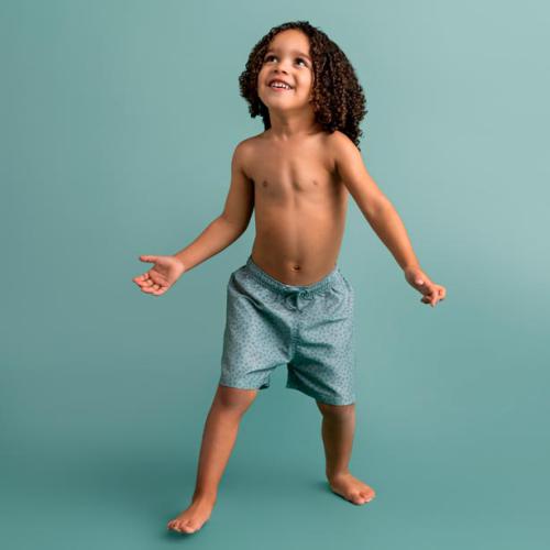 146/152. 80% poliéster e 20% elastano com forro suave, elástico e de secagem rápida. Proteção UV UPF50+. Cintura ajustável com cordão. Tamanhos dos 62/68 aos 146/152.