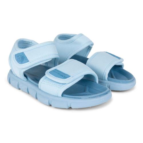 Tamanho 24. Material: 100% reciclado, suave e resistente. Design leve e respirável com sola flexível. Sola antiderrapante para maior segurança. Cor azul da coleção Pure Tones.