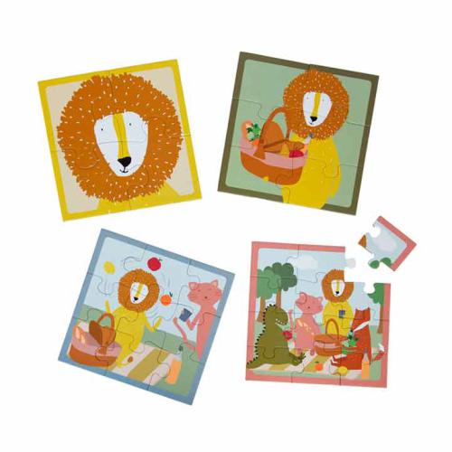 Anybody for a picnic? This quartet of colourful puzzles challenges your little one at multiple stages, with a different number of pieces for each picnic picture. Perfect for sparking imaginations, fine-tuning motor skills and practising the art of proble