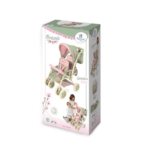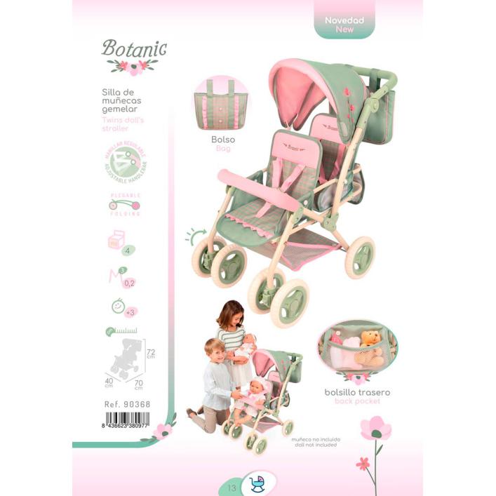 Desc. Técnica: Surpreenda os mais pequenos em casa com um novo e detalhado carrinho de bonecas. Este carrinho é uma peça muito especial para brincar de faz de conta, que traz muitas vantagens para o desenvolvimento das crianças. O novo carrinho gémeos de bonecas Botanic com mala da DeCuevas é a oportunidade perfeita para brincar e divertir-se dentro e fora de casa.