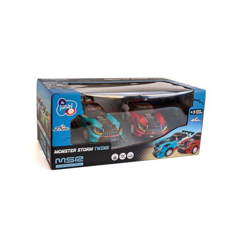 Desc. Técnica: Carros de rally radiocontrolo Rally Storm Twin Doble, escala 1:26, frequências 27 e 40 GHz. Funcionam com 3 pilhas AA no carro e 2 pilhas AA no comando, não incluídas.