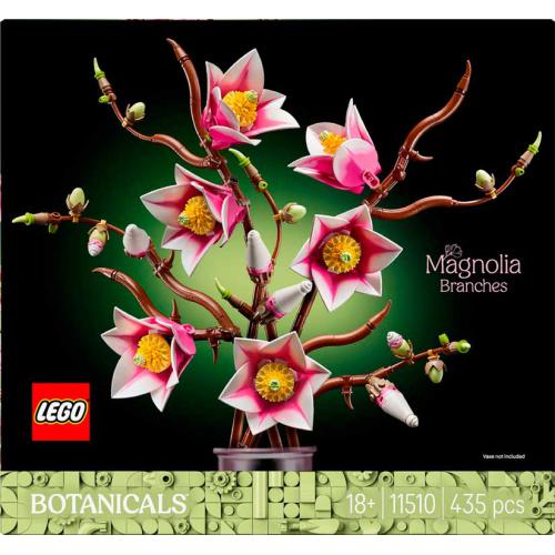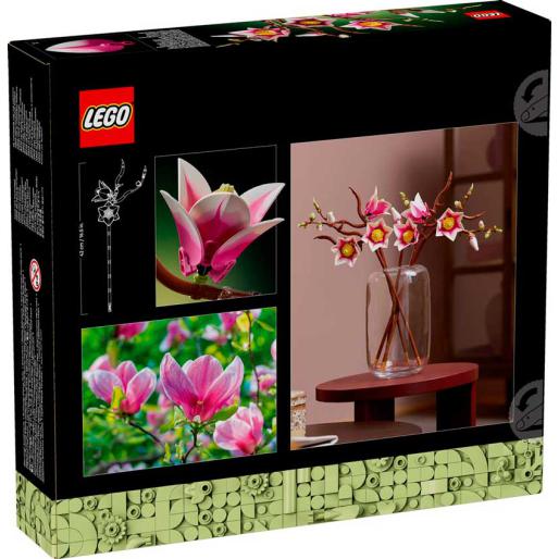 Deixa-te envolver pela natureza com o LEGO Botanicals - Ramos de Magnólia para adultos, um arranjo com 5 ramos detalhados e pétalas em dois tons para maior realismo. Inclui elementos criativos como peças de cupcakes, sapos, ovos e gelados integrados nos botões e ramos. Com 435 peças, é um presente ideal para fãs da natureza em ocasiões especiais.