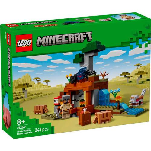 A Expedição na Mina do Armadilho é um set LEGO Minecraft para crianças com mais de 8 anos que recria aventuras no bioma da savana com exploração e ação. Inclui uma mina com função de TNT acionada por alavanca, revelando minérios escondidos. Conta com figuras como aranha da gruta, lobo e dois armadilhos, além de elementos como rio e cascata de lava. É um set interativo e versátil, ideal para brincadeiras criativas e fãs de Minecraft.