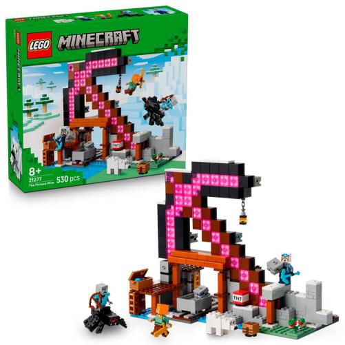 A Mina Picareta é um set LEGO Minecraft para crianças com mais de 8 anos que combina construção e ação explosiva numa picareta temática. Inclui as minifiguras Alex, um Mineiro e um spider jockey, além de um urso polar à superfície. As crianças podem extrair minérios, transportá-los em vagoneta e usar TNT para destruir paredes durante a brincadeira. Com 530 peças, também funciona como peça de exposição criativa para fãs de Minecraft.
