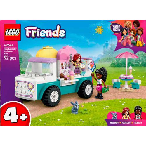 O LEGO® Friends Carrinha de Gelados de Heartlake City permite às crianças recriar histórias de faz de conta com vendas de gelados e interações com clientes. Inclui 2 minibonecas, uma figura de coelhinha e acessórios como cones, sabores, caixa registadora, cadeiras e guarda-sol. As crianças podem imaginar a Paisley a servir gelados de chocolate, morango e baunilha. As peças maiores facilitam a construção inicial e a app LEGO Builder ajuda com instruções em 3D.