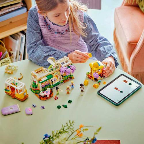 O LEGO® Friends Café das Plantas e Loja de Flores combina um café acolhedor com uma loja de flores repleta de detalhes. Inclui 4 minibonecos, figura de gato, um elétrico e vários acessórios para criar histórias com Aliya, Olly, Nova e Esma. As crianças podem explorar o café com cozinha equipada, mesas exteriores e a loja com buquês e vasos. É ideal para brincar, imaginar encontros entre amigos e também para exposição decorativa.