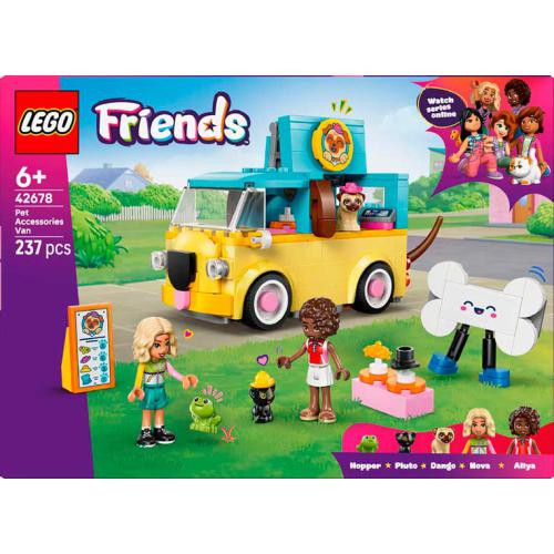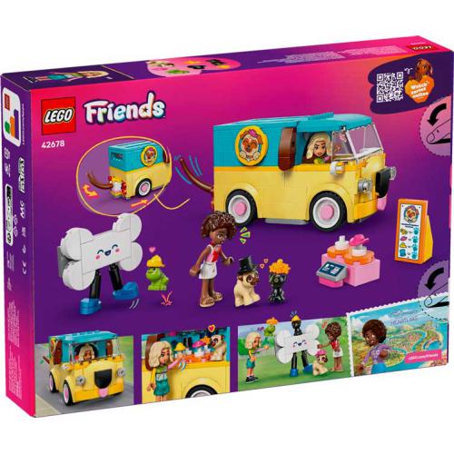 O LEGO® Friends Carrinha de Acessórios Caninos permite às crianças criar histórias com 2 minibonecas e figuras de gatinho, cão e sapo. Inclui uma carrinha em forma de cão com cauda que abana e muitos acessórios como chapéus e itens de moda. As crianças podem imaginar desfiles, preparar os animais e organizar aventuras móveis. Estimula a criatividade, o jogo de faz de conta e o cuidado com animais.