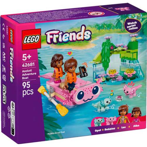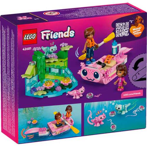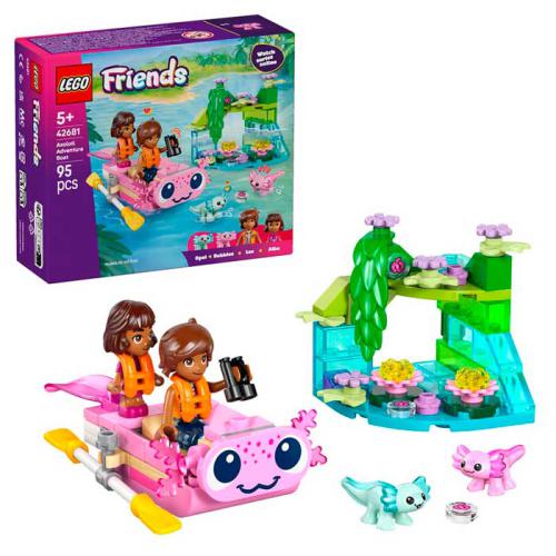 O LEGO® Friends Barco de Aventuras em Forma de Axolote permite às crianças criar histórias com 1 miniboneco, 1 microboneca e 2 mini axolotes. O barco tem um design divertido com rosto amigável, cauda que abana, remos e coletes salva-vidas. Inclui ainda um cenário com plantas, flores e água para recriar o habitat natural. Estimula a imaginação, o jogo de faz de conta e o interesse pelos animais.