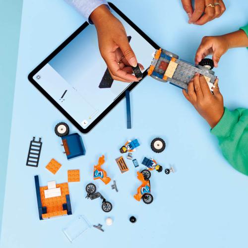 Entra num mundo de corridas e imaginação com o LEGO City Camião de Transporte de Motas e cria aventuras cheias de ação. Vais divertir-te a carregar e descarregar as motas com a rampa e a inventar desafios emocionantes. O camião com pneus grandes e as minifiguras tornam a brincadeira ainda mais realista. Ideal como presente especial, permite-te combinar com outros conjuntos para mais velocidade.
