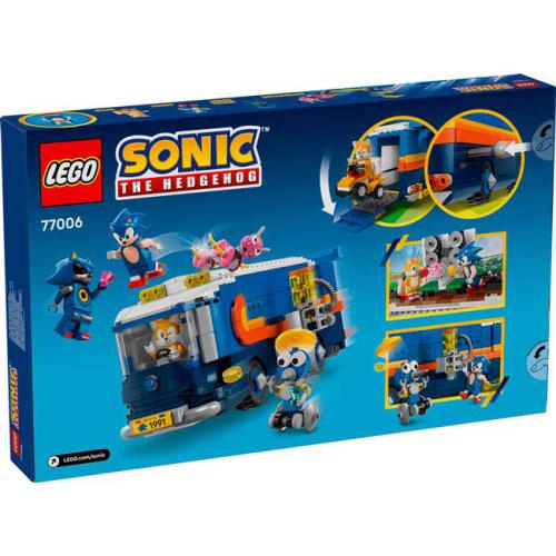 Se és fã do Sonic, vais adorar este LEGO Camião de Comando Team Sonic, repleto de ação e possibilidades de jogo. Podes explorar um camião que abre dos lados, com cabine amovível, lançador de espigas e uma área com função de lançamento de ATV para cenas dinâmicas. Inclui várias personagens icónicas como Sonic, Tails e Metal Sonic, além de outros inimigos, permitindo recriar batalhas entre o bem e o mal. É perfeito para criares histórias, brincar durante horas e depois expor como parte da tua coleção.