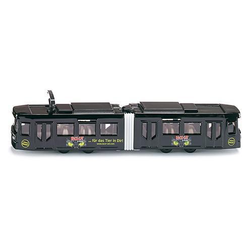 Elétrico feito de peças de metal e plástico com gráficos coloridos. O veículo reflete o aspeto da máquina real.