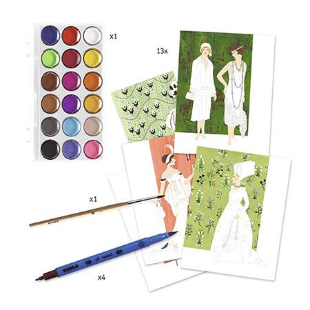Desc. Técnica: Um fantástico conjunto de arte com tema de moda que contém treze imagens para colorires com as tintas e marcadores incluídos. As imagens apresentam roupas de diferentes épocas da história, incluindo vestidos medievais, vestidos eduardianos, estilos dos anos 20 até vestidos dos anos 50. Um conjunto encantador para aspirantes a artistas, especialmente para quem tem interesse por moda ou história.
