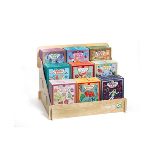 Desc. Técnica: Display entregue vazio. Capacidade para 27 unidades. De madeira. 52 x 38 x 36 cm.