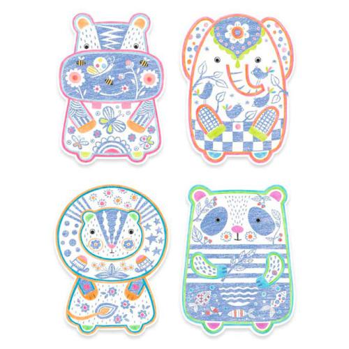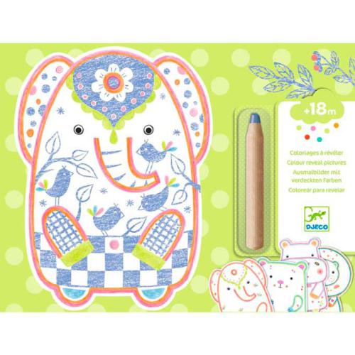 Uma embalagem com 12 figuras para colorir com um lápis de cor grosso, ideal para os mais pequenos. Pinta os animais selvagens com o lápis e descobre o que está escondido. É mágico! O lápis só pinta em certas áreas, revelando padrões e surpresas e adequado para os mais pequenos. Os desenhos têm a forma de animais.