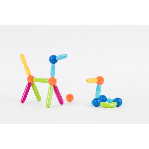 Dá largas à imaginação com este conjunto de barras magnéticas de cores vivas e bolas metálicas. Podes construir em 2D e 3D de forma versátil e divertida e criar sem limites! Inclui 8 bolas metálicas, 6 barras magnéticas compridas, 6 barras magnéticas pequenas, 4 barras magnéticas curvas.