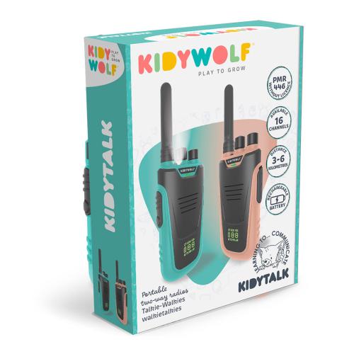 Características: Walkie-talkie bidirecional com 16 canais e alcance de até 6km. Bateria de lítio, recarregável. Ecrã retroiluminado. Possibilidade de conectar mais de 2 KIDYTALK. Lanterna e clip para o cinto.