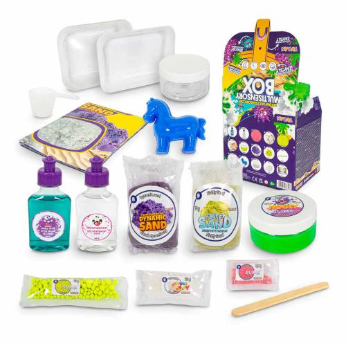 Desc. Técnica: Mergulha num mundo de sensações com este conjunto de massa sensorial! Inclui tudo para criar slime com aditivos únicos, dois tipos de areia, neve artificial mágica, cristais de água e acessórios para diversão criativa. Benefícios: desenvolve motricidade fina, criatividade e curiosidade; permite tocar, misturar, observar e criar; estimula todos os sentidos e a imaginação. Produto seguro e educativo, ideal para casa, pré-escola ou salas de terapia.