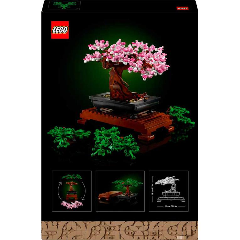 Desc. Técnica: Deixa a tua criatividade florescer e abraça a arte do bonsai com este elegante Bonsai LEGO®. Este projeto prático é ideal para trazeres calma e tranquilidade ao teu dia enquanto constróis. Celebra as estações trocando as flores cor-de-rosa por folhas verdes. Dá asas à tua imaginação ao dispor as peças e cria o teu próprio arranjo exclusivo, com vaso e base de suporte incluídos.