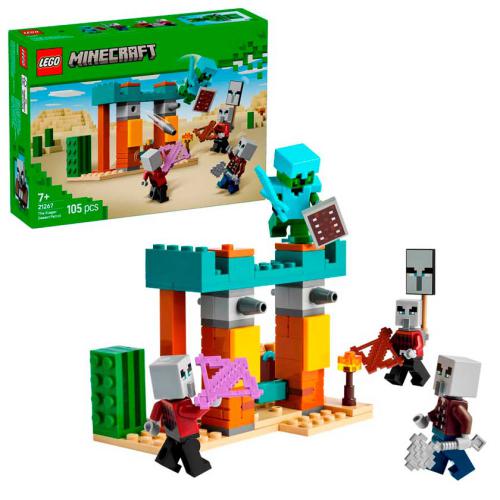 Desc. Técnica: Os jogadores de Minecraft têm muito para descobrir com o LEGO Minecraft A Patrulha do Deserto Illager para crianças com mais de 7 anos, um pequeno set cheio de ação. Inclui o Cavaleiro Cato com armadura de diamante e espada, além de 3 illagers que atacam um posto avançado no deserto. As crianças podem defender o tesouro com mísseis disparados com um dedo e usar armas e acessórios incluídos. É um set compacto e dinâmico, ideal para fãs de Minecraft e brincadeiras criativas.
