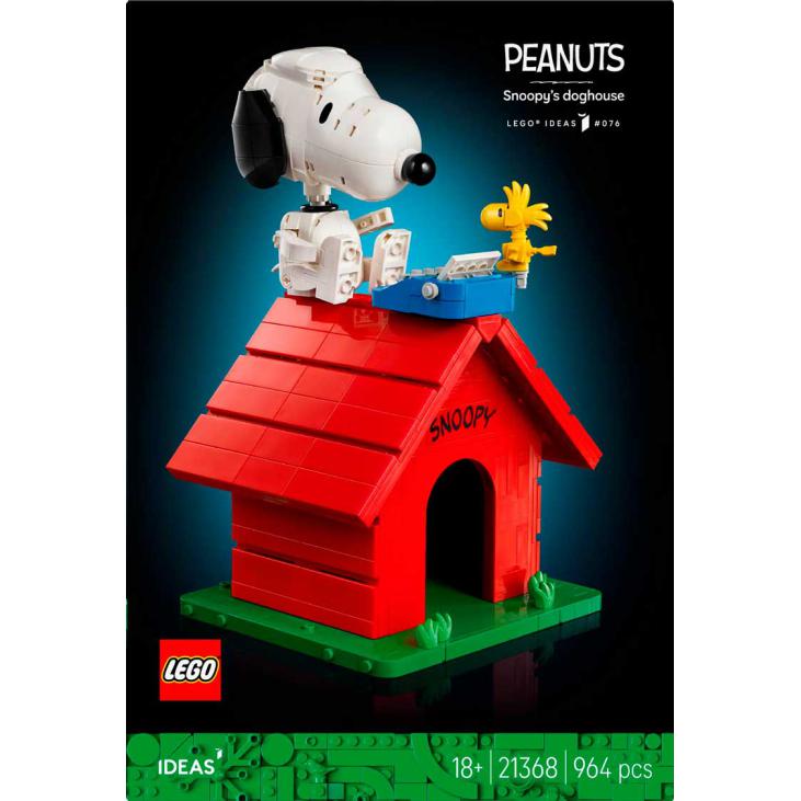 Desc. Técnica: Inspira-te no universo Peanuts com o LEGO Ideas - A Casa do Snoopy, ao recriar o icónico cão com várias opções de pose, incluindo deitado, sentado ou de pé, graças aos elementos ajustáveis. Inclui também Woodstock, uma máquina de escrever e a casota com interiores dobráveis que revelam uma cena noturna com fogueira. Permite recriar momentos clássicos e criar uma decoração nostálgica. Com 964 peças, é um set ideal para fãs de Snoopy e colecionadores.