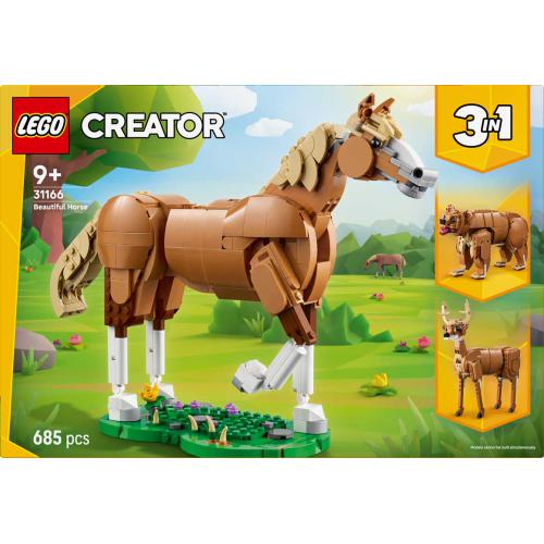 Desc. Técnica: Com este set, vais criar um cavalo altamente ajustável, com cabeça, pescoço, anca, cauda e joelho móveis, que pode ser exposto em várias poses numa base com efeito de relva. Podes reconstruí-lo em mais dois animais diferentes: um urso com uma pequena cascata ou um veado elegante, usando as mesmas peças. Cada modelo permite encenar histórias e também expor as figuras de forma apelativa no quarto. É ideal para estimular a criatividade e o gosto por animais.
