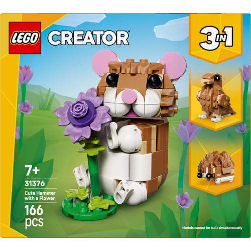 Desc. Técnica: Crianças fãs de animais vão divertir-se com este set LEGO Creator Hámster Adorável com Flor, que lhes permite construir e reconstruir três modelos diferentes com as mesmas peças, desde um hámster com elementos ajustáveis até alternativas como um ouriço ou uma águia, com possibilidades de brincadeira criativa e modelos que também podem ser expostos, este conjunto oferece uma experiência simples, divertida e imaginativa que estimula o faz de conta e a construção.