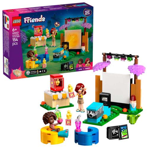 Desc. Técnica: O LEGO® Friends Noite de Filmes e Amizade recria uma sessão de cinema ao ar livre com as personagens Paisley e Aliya. Inclui um projetor com peça luminosa que projeta no ecrã, além de uma máquina de pipocas funcional com alavanca. Com acessórios como cadeiras, bebidas e banda desenhada, incentiva histórias criativas e brincadeira imaginativa. A app LEGO Builder ajuda a construir com instruções digitais em 3D.
