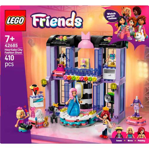 Desc. Técnica: O LEGO® Friends Desfile de Moda de Heartlake City permite às crianças criar histórias no mundo da moda com 3 minibonecas. Inclui roupas e acessórios para combinar, como saias, casacos, óculos de sol e malas. As crianças podem usar a plataforma giratória, espelhos, mesa de maquilhagem e câmaras para simular um desfile. Estimula a criatividade, a expressão pessoal e o jogo de faz de conta.