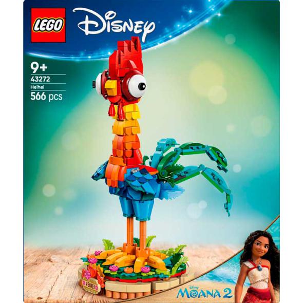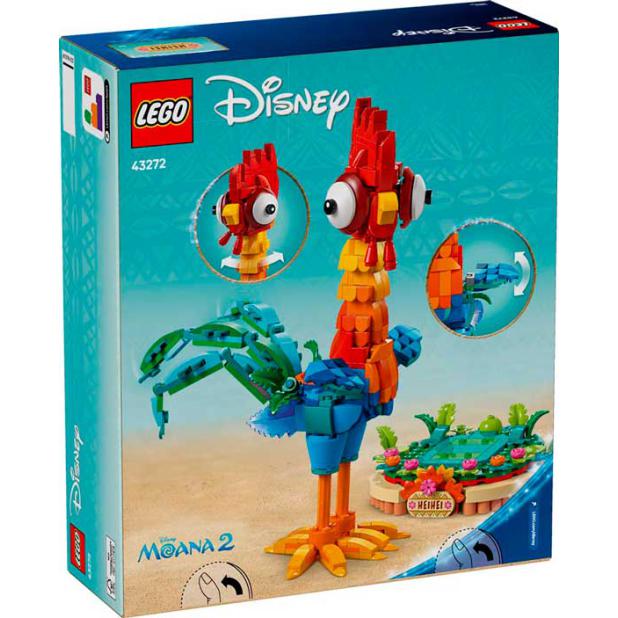 Desc. Técnica: O LEGO® Disney Vaiana 2 Heihei permite construir a divertida galinha Heihei com cabeça rotativa e asas e cauda ajustáveis. Inclui um suporte decorado com flores e uma placa identificadora para exposição. O modelo pode ser colocado de pé ou exibido no suporte. É um set criativo pensado para fãs de Vaiana, ideal para brincar e decorar.